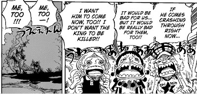 Everything just came in full force in the later half of the chapter. We had Nami doing what she does best by putting her brains and thieving together. Robin being sneaky and freeing King Neptune and the brothers. Franky and Usopp manning the Sunny from the sky to fire the Gaon Cannon! All in all it seems like whatever plan Jimbei cooked up with Luffy and crew is working. Still we are getting exactly what we wanted which is....THE STRAWHATS DOING AWESOME STUFF!